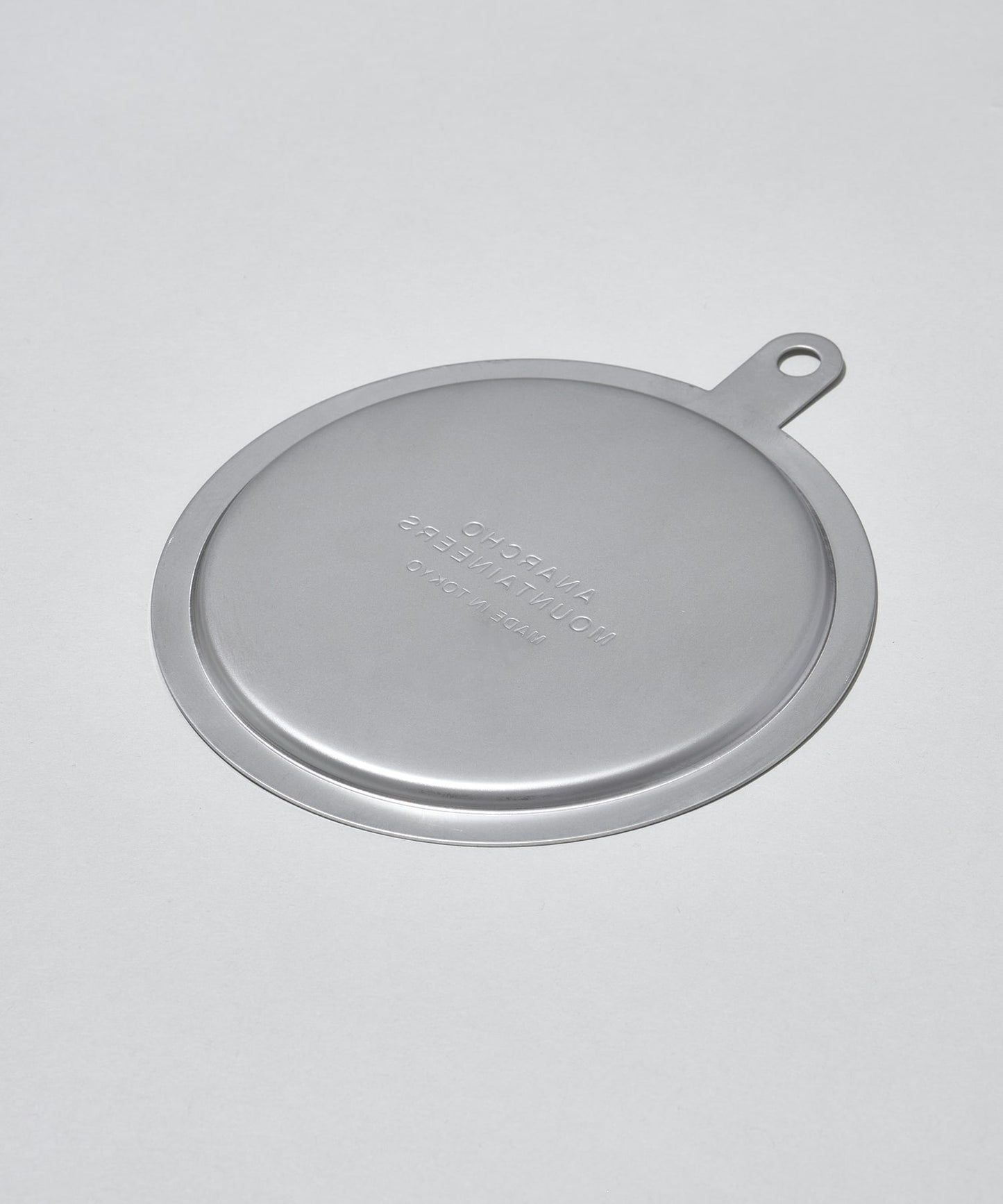 ステンレスのキャンプ食器シリーズ。重厚感あふれるがっしり無骨な作りでおなじみのもの。 日本古来のヘラ絞り工法で製作されるMADE IN TOKYO製品。 こちらは”カップ”と”マグ”専用の蓋。